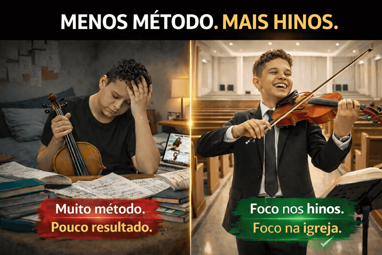Agora chegou a sua vez de aplicar o Aprenda Violino com Hinos e evoluir no instrumento com direção clara, segurança e foco no que realmente importa: tocar para servir com excelência.