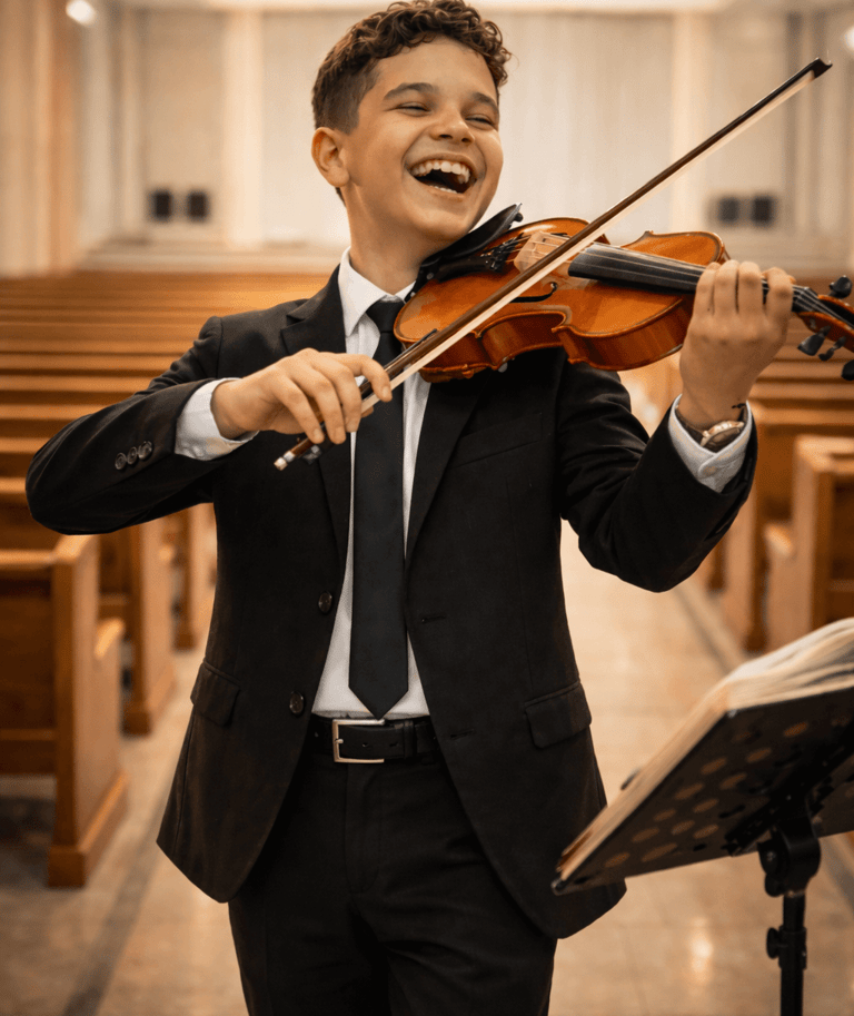 Sua metodologia simplifica a iniciação no violino, conectando técnica, musicalidade e espiritualidade desde as primeiras aulas.